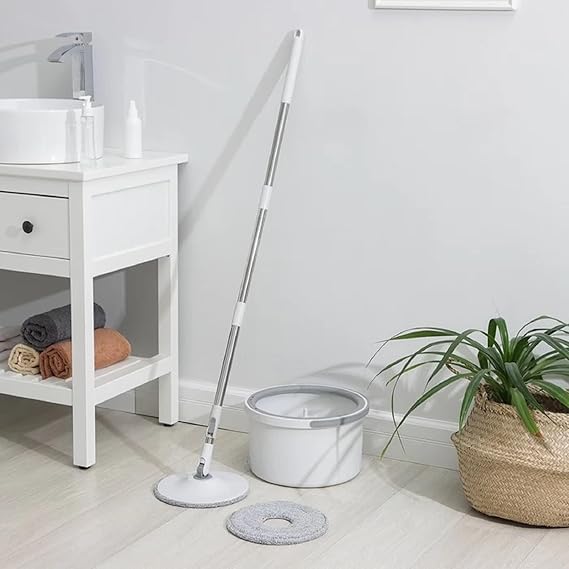 Mevigo Spin Mop with Bucket Deluxe System for Floor Cleaning – 360° Flexible Mop with Self Separation Dirty and Clean Water System 2Pcs Reusable Microfiber Pad for All Types of Floor Clean – White