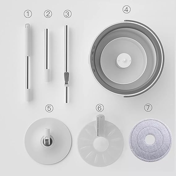★ SPACE SAVING & CONVENIENT STORAGE: Mop Bucket Set: The single tank bucket is more compact than a two-tank type. Cleaning and dehydrating are integrated so you don’t have to worry about storage space. When you’re done cleaning, you can separate the poles into 3 rows and store them in the bucket. Set details: 1 tank bucket, 3 handles required for assembly, 2 pads, 1 head