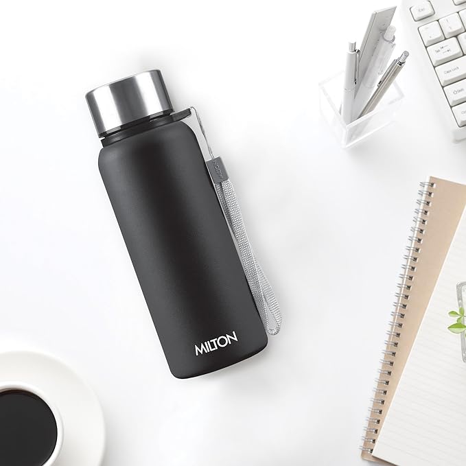 MILTON Brim 600 Stainless Steel Water Bottle, 560 ml, Black | Single walled | Leak Proof | Easy Grip | Easy to Carry | Gym Bottle | Home | Kitchen | Hiking | Treking Bottle | Travel Bottle