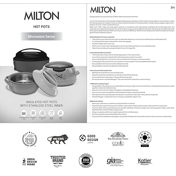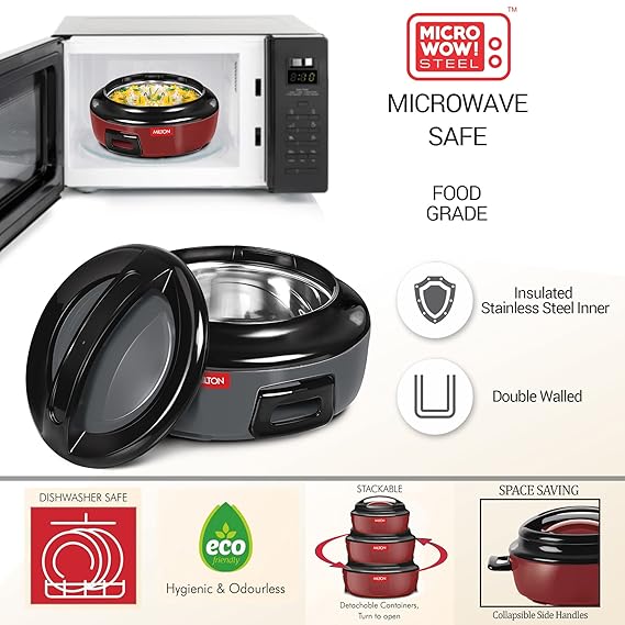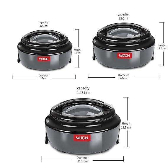 MILTON Ernesto Inner Stainless Steel Jr. Casserole Set of 3 (420 ml, 850 ml, 1.43 litres), Grey | Easy to Carry | Serving | Stackable