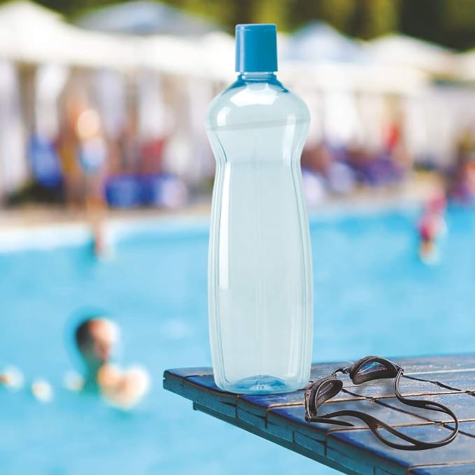 MILTON Pacific Pack of 6 Water Bottles, 1 Litre Each, Reusable Plastic Fridge Bottle Set, BPA Free and Leak Proof Bottles for Travel, Work, Blue