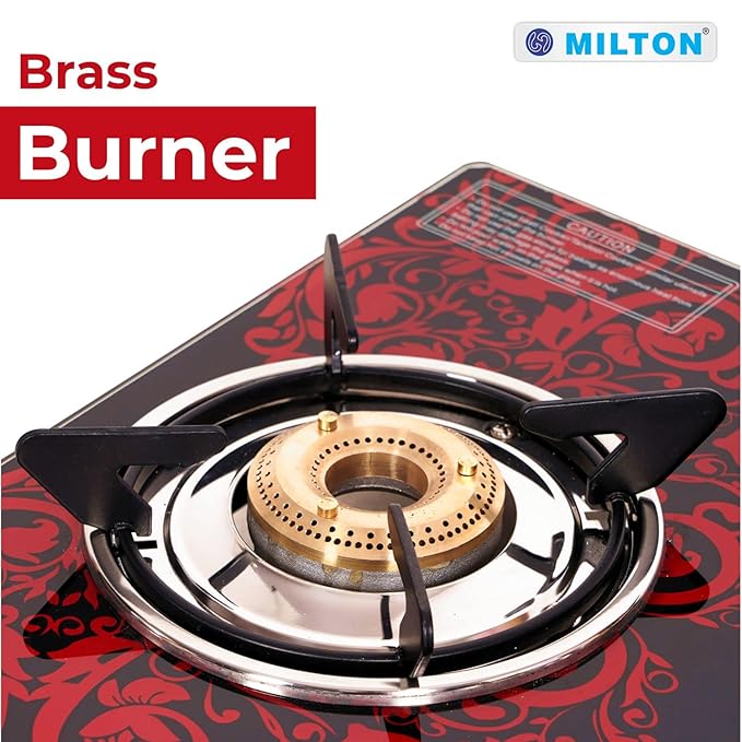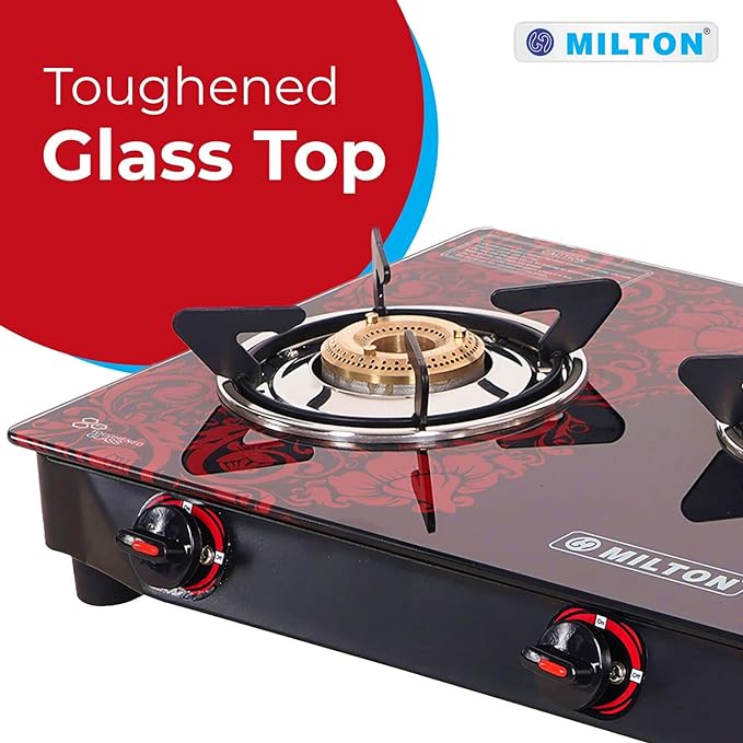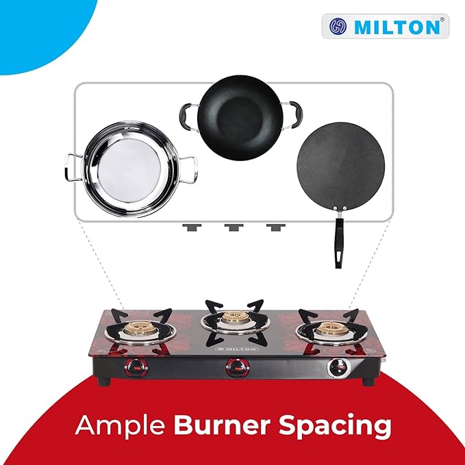 MILTON Premium Red Manual Ignition Glass Top Gas Stove,1-Year Manufacturer’s Warranty (ISI Certified) (3 Burner)