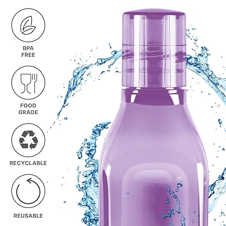 MILTON Prive 1000 Water Bottle, 1 Litre, Reusable Plastic Fridge Bottle, BPA Free and Leak Proof Waterbottle for School, Travel, Work, Pack of 1, Purple