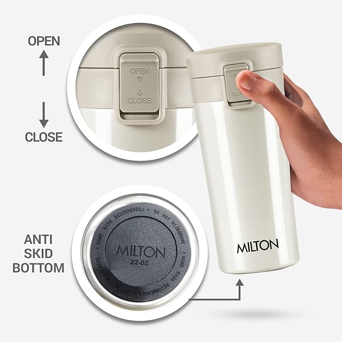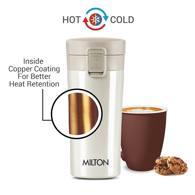 MILTON Thermosteel Vacuum Insulated Coffee Mug, 300 ml, Cream | Hot & Cold Flask | Leak Proof | Rust Proof | Thermos | Soup Flask | Juice Mug | Water Flask | Tea Mug | Easy Grip
