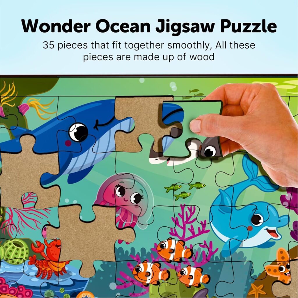 PACKAGE CONTENT: 35 Pieces of Ocean Wonder Wooden Jigsaw Puzzles; Color: Multicolor