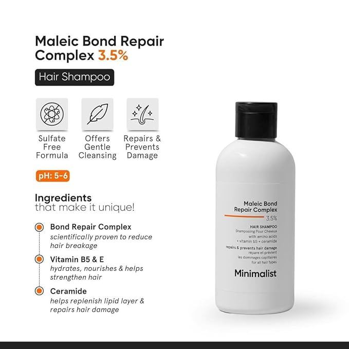 Minimalist Maleic Bond Repair Complex 3.5% Hair Shampoo with Ceramide, Coconut oil & Betaine | For Damaged & Frizzy Hair | For Women & Men | For All Hair Types | 20 ml (Pack of 1)