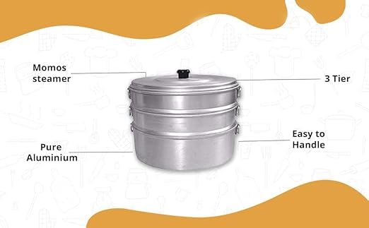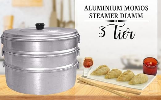 mirakos Premium Aluminium Momos Maker & Steamer with Handles, Durable 3 Tier Steamer for Cooking, Suitable for Home, Hotels, Restaurant and Business (SILVER)