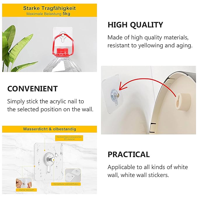 Misamo Enterprise Polycarbonate Hooks For Wall Without Drilling Waterproof Hooks For Bathroom Shower Kitchen Keys Door Outdoor Home Improvement Utility Hook (Pack Of 10, Photo Frame Hook), Clear