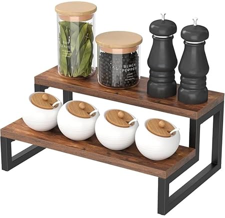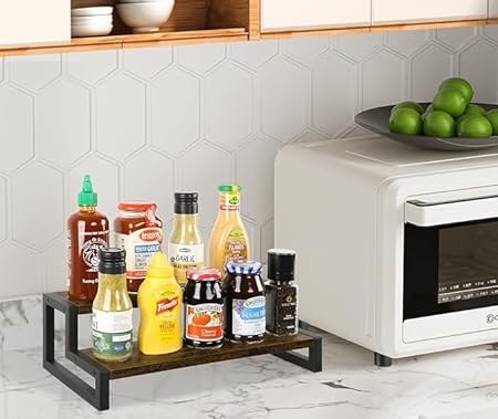 MT WoodRyzn Multipurpose Wooden Countertop Spice Rack Kitchen Organizer 2-Tier Kitchen Storage Jars Holder & Kithen Decor Item Standing Shelf Pot Stand Book Shelf Pack Of 1