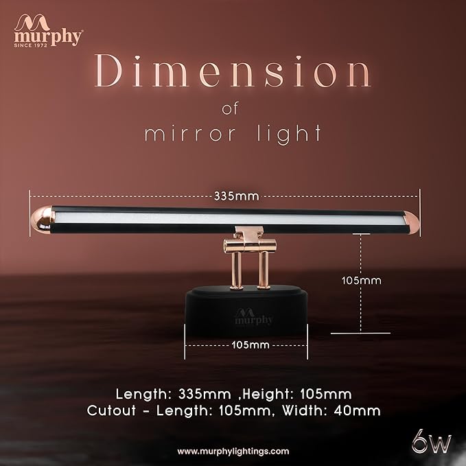 Murphy 6W 3-in-1 Color Chnaging Black Rose Gold Finish LED Mirror Picture Wall Light,Bathroom Vanity Led Mirror Light with 2 Year Warranty (Cool White/Warm White/Natural White)-Pack of 1