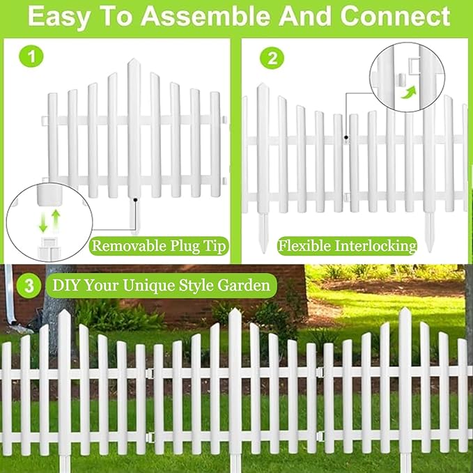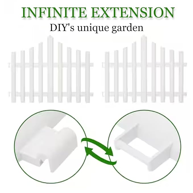 [GARDEN FENCE FOR OUTDOOR] Material: Plastic,Pieces: 2pcs, 4pcs, 8pcs, 16pcs. These self-standing garden fences are designed to easily partition your garden, create flower beds, or add a decorative touch to your outdoor space.