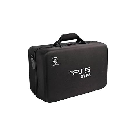 ★【Hard Carry Case】The hard case for PS5Slim is made of waterproof and shockproof nylon fabric, which is eco-friendly and durable. The padded inside will protect your device for PS5 from water, scratches and collisions.