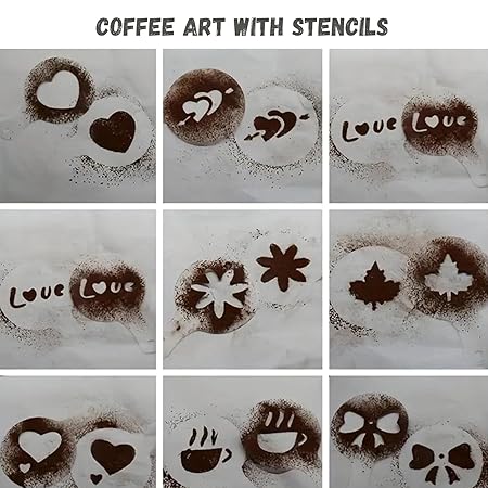 DECORATE YOUR HOT DRINKS AND DESSERTS – the nice assortment of barista stencils are perfect for making some funny pattern on your coffee and give your drinks a more attractive look! Also great for decorating cakes,cupcakes, airbrushing designs on cookies etc