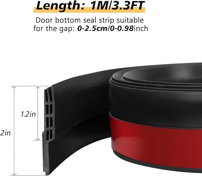 Door tape for seal -Three sound proof cavity for this door draft seal is a efficient door insulation design, reduce noise up to five times; Help your door seal well; Also it is an direct energy saving set for your door to block cold and hot air cross, help you, reduce electric cost. It can seal gap of 0 to 1 inch.