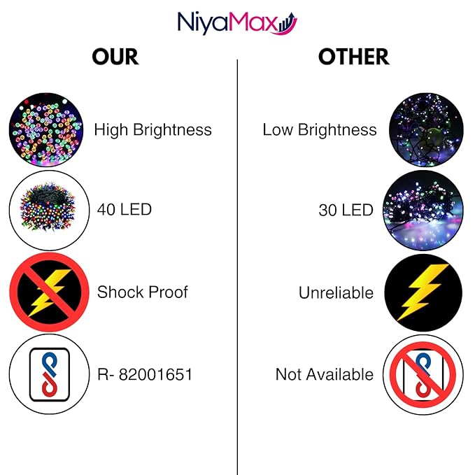 NIYAMAX 35 Feet 36 Led String Serial Lights, Copper Wire LED Decorative String Fairy Rice Lights for Indoor, Outdoor, Decoration, Festival, Party, Wedding, Garden, Lawn (Multicolor)(Pack of 1)