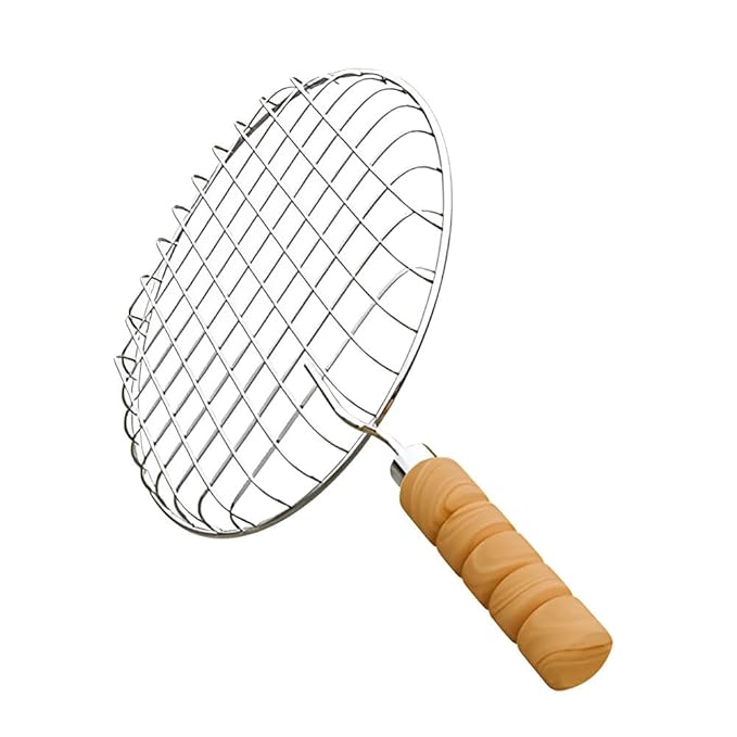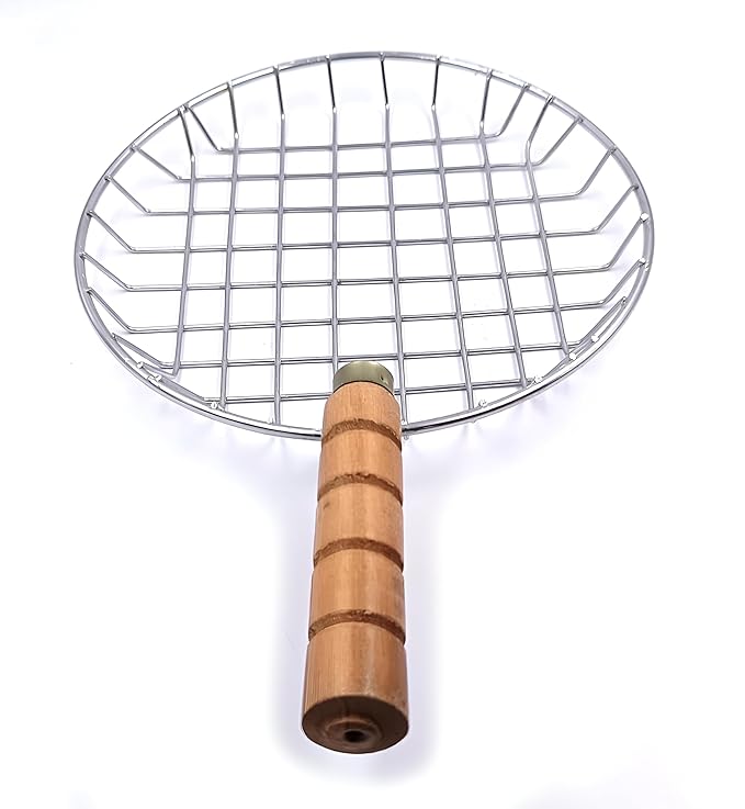 NOHUNT Phulka Grill Roaster for Gas Stove, Grill Tawa Jali for Kitchen Cooking, Roti Basket Pulka Pan Roaster Grill with Wood Handle, Papad Jali, Jali Brinjal Roaster (Heavy Steel Wire)