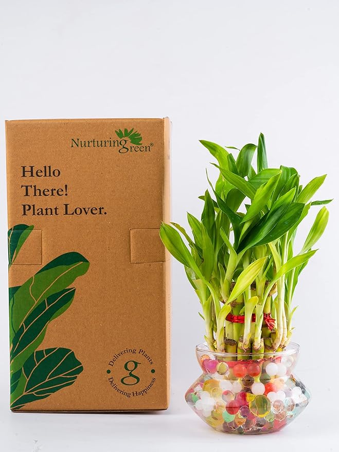 Nurturing Green® Lucky Bamboo Plant in 4 Inch Wide Glass Pot (Small:2 Layer Bamboo) | Living Room Plants | Indoor Plants