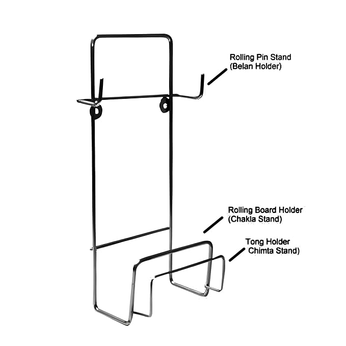 Oblivion Stainless Steel Chakla, Belan, Chimta Stand | Trendy Rolling Pin Board Holder | Wall Mount Stand | 3 in 1 Holder | Kitchen Rack | Kitchen Organizer (Pack of 1)