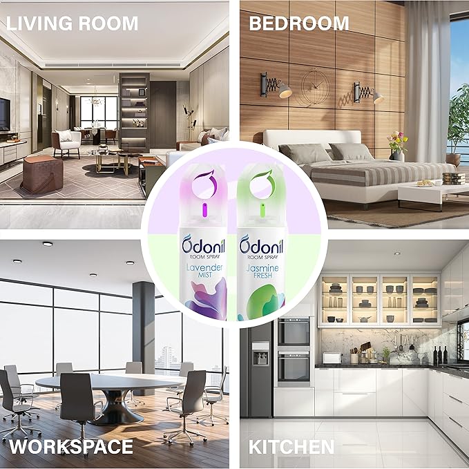 Odonil Room Air Freshener Spray – 440ml Combo (Pack of 2, 220ml each) | Lavender Mist & Jasmine Fresh | Nature Inspired Fragrance for Home & Office | Long Lasting Fragrance