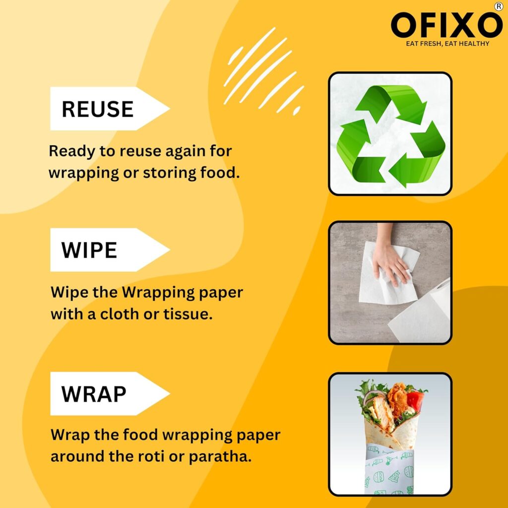MULTI-PURPOSE :— OFIXO Food Wrapping Paper offers Longer Freshness to the Food and it protects the Food’s moistness, Aroma and Flavours of food and keeps food bacteria-free for longer. Use for wrapping, baking, covering leftovers, storing and much more. Moisture lock to keep fruits, veggies and meat fresh.