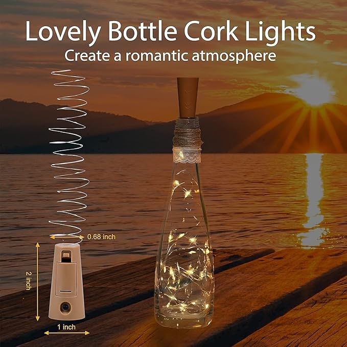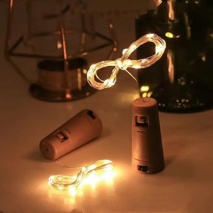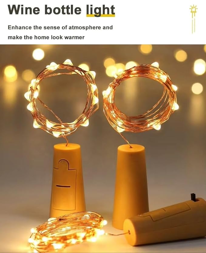 One94Store Bottle Lights with Cork, Copper Wire Battery Operated Fairy String Lights, Decorative Lights for Wine Bottles, Party, Diwali, Wedding, Home & Garden (2 Meter 20 LED, Warm White, Pack of 2)