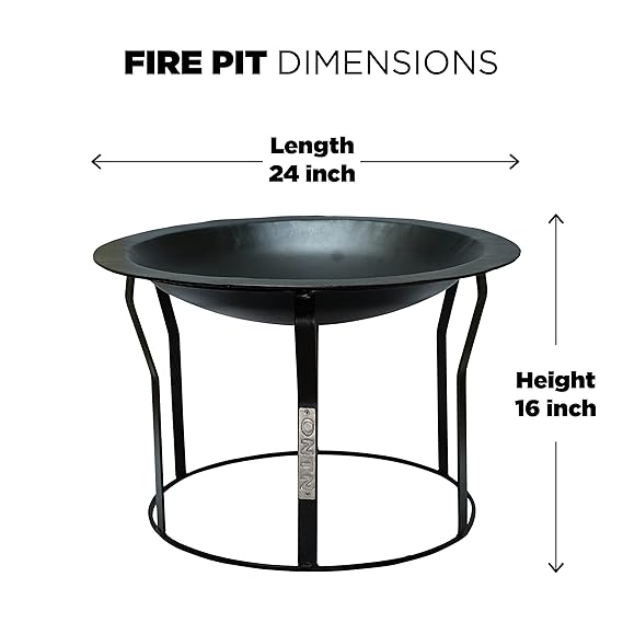 [COMPACT AND PORTABLE] This Outdoor Bonfire pit can easily be moved around on the patio, yard, lawn, garden, or while camping at the campground; Overall fire pit dimensions are 24 inch diameter x 16 inches high, and weighs 13 kgs. Perfect for a bonfire with a large group. Keep yourself warm in winters.
