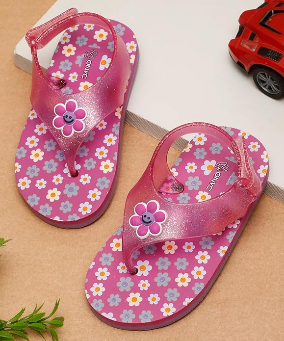 ONYC Premium Lemon Jellies Flip Flops for Baby Girls, Indoor and Outdoor Slipper for Kids with Strap