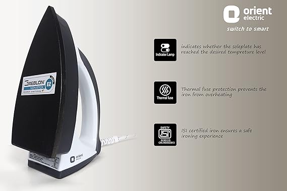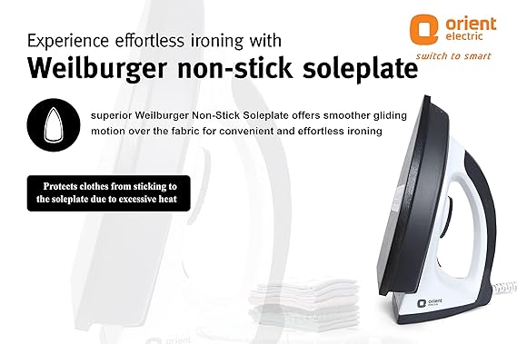 Orient Electric Ultimate |1000W Heavy Weight Dry iron (Press) | Non-stick Weilburger coating| Silver Layered Thermostat| U-shaped heating element| ISI certified| 2-year replacement warranty