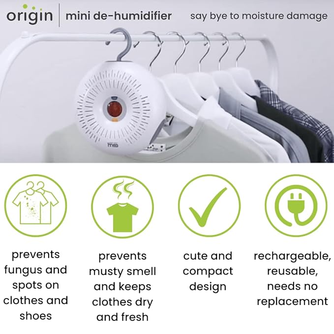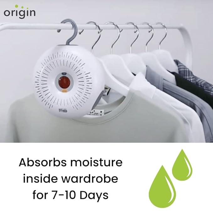 [YOUR CLOTHES WILL FEEL FRESH FOREVER]: Say bye to musty smell and mold on your clothes experience origin mini dehumidifier. It acts as a wardrobe dehumidifier, effectively controlling the humidity inside the wardrobe and keeping your apparels safe and fresh, always.