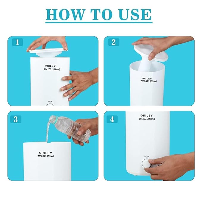 COOL MIST HUMIDIFIER & AIR PURIFIER: ORILEY ZM2021 (New) Cool Mist Ultrasonic Humidifier is designed to quietly humidify the interiors while purifying the air without disturbing your study, work or sleep. Up to 350ml/H mist output provides ideal humidifying coverage for bedrooms, offices, and other medium-sized rooms.
