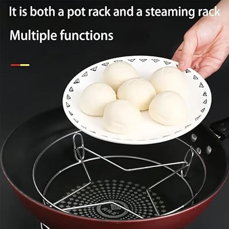 Wide Application: – Steam cooker rack has a wide range of uses. It can be used not only as a steam rack, but also as a cooling rack, pot rack, etc. It is very convenient to use to both side. Can be used for steaming racks, heat insulation pads, three-layer steel, balanced force, not afraid of hot placement, bring you a safe and comfortable.