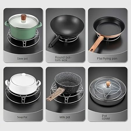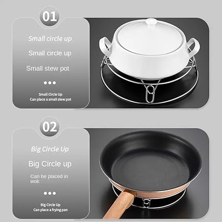 Pack In:- 1 x Steaming Rack Pot Holder Stand || Size: 21.524.55 cm || Material:- Stainless Steel || A necessary accessory for kitchen use, great for food steaming, baking, roasting,etc.