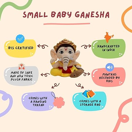 Panda’s Box Mantra Chanting Baby Ganesha (Small – 20 CM) | Musical Soft Plush Toy | Best Gift for Infants, Toddlers & Babies