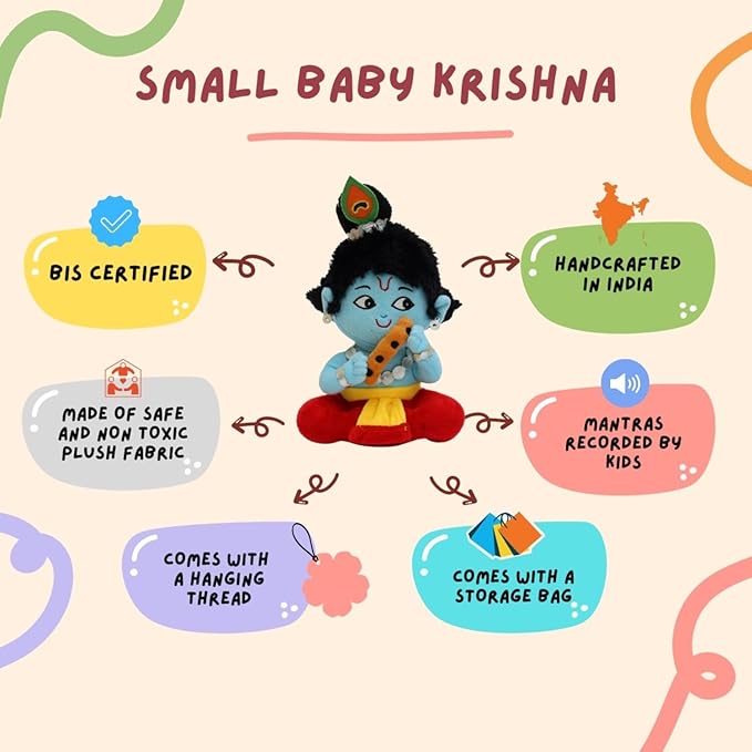 Panda’s Box Mantra Chanting Baby Krishna (Small – 23 CM) | Musical Soft Plush Toy | Best Gift for Infants, Toddlers & Babies