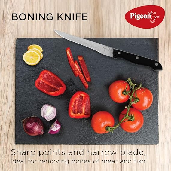 Shears Knife set includes 1 – Boner Knife (25cm), 1- Utility Knife (23cm), 1- Steak Knife(22cm), 1- paring Knife(18cm), 1 – Kitchen Scissor (21cm) & 1 – Wooden Stand.;This Kithen knife set made from a single piece of stainless steel with riveted handles which gives a comfortable experience and each of them provides a proper grip.