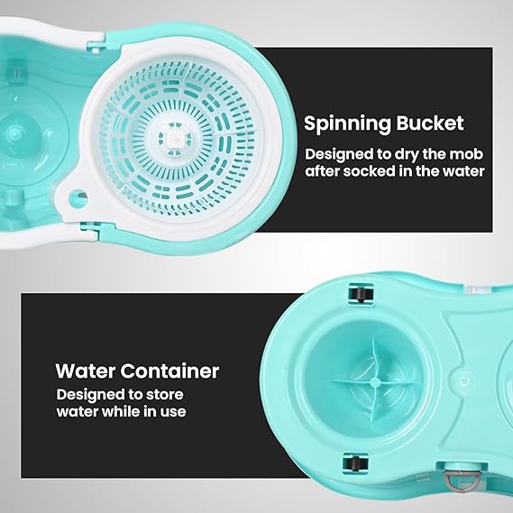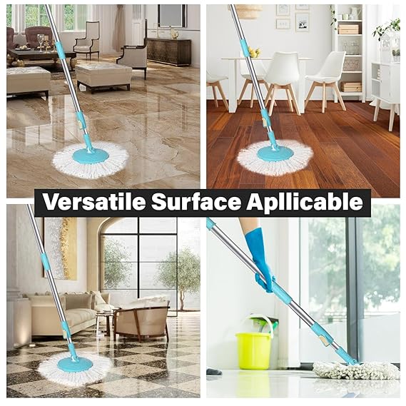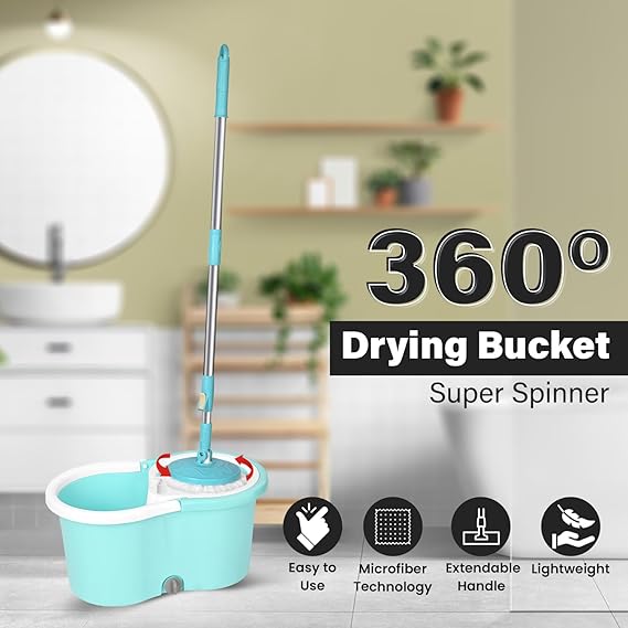 Pivalo Bucket Quick Spin Mop with 2 Microfiber Wet Dry Mophead Floor Cleaning pocha Extendable Handle Removable Wringer 360° Floor Cleaner Mopping Set (Random Colour)