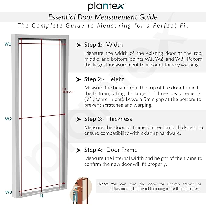 πππ¬π² ππ§π¬πππ₯π₯πππ’π¨π§ π°π’ππ‘ π-ππππ« πππ«π«ππ§ππ²: Plantex doors are lighter than traditional wood, making them easier and quicker to install, which reduces installation costs. Additionally, they come with a 5-year warranty against manufacturing defects, ensuring peace of mind and long-term performance.