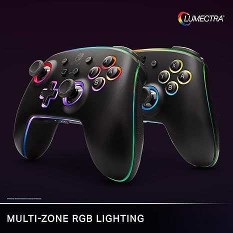 PowerA Enhanced Wireless Controller with Lumectra for Nintendo Switch with Multi-Zone RGB Lighting, Black (Officially Licensed)