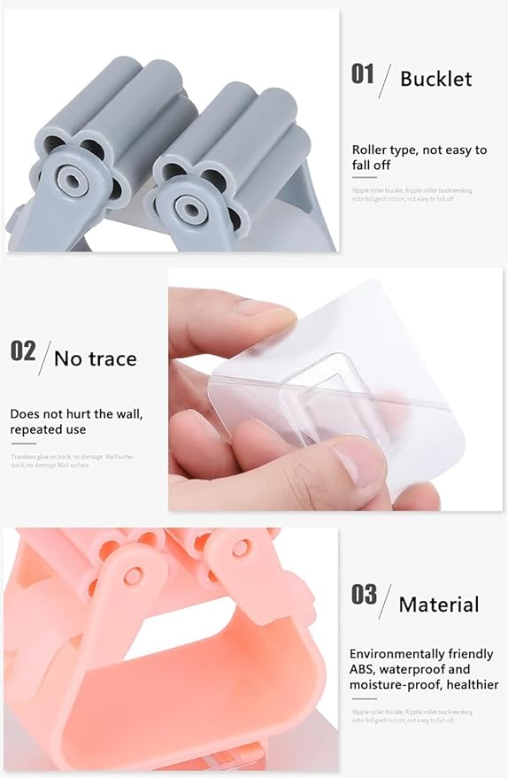 This Mop Broom Holder has a roller design, is easy to access, keep the home clean and tidy, and makes people feel happy and comfortable