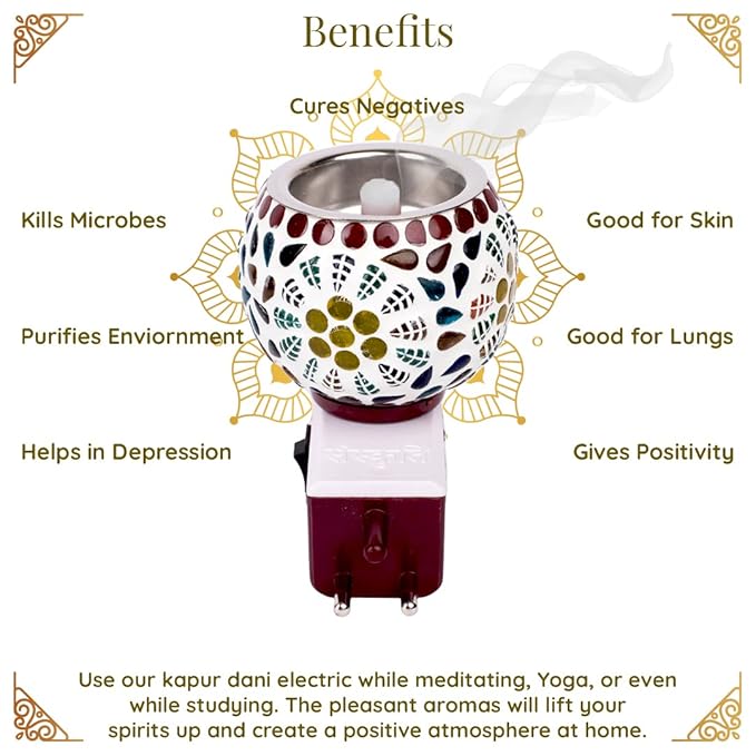 Beautiful looking direct plug-in Ceramic Kapoor Dani is best for burning Kapoor; Easy to use Produce less smoke very easy for cleaning, Heavy Duty Coil.