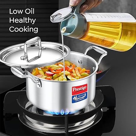 Prestige 16cm/1.5L Tri-Ply Splendid Casserole| Gas and Induction Compatible |Even Heat Distribution| Thick Gauge Tri-Ply Body| Perma Cool Handles|15 Year Warranty