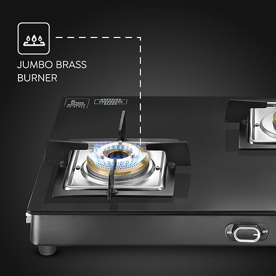 Triad Nozzle Design: Connects gas tube from 3 sides for hassel-free connectivity; Reliable Warranty: The glass cooktop offering a dependable 5-year warranty on the glass and 2-year warranty on the product