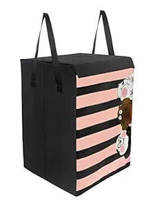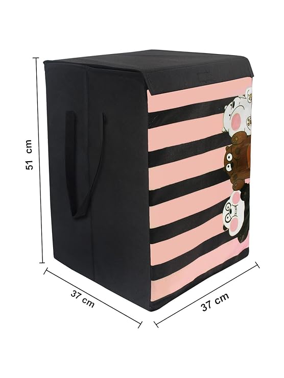 PrettyKrafts 75L Non Woven Panda Printed Square Foldable Large Laundry Bag/Basket With Lid & Handles, Freestanding Clothes Storage Organizer for Bedroom, Dorm (35x35x55cm, Black, Set of 1)