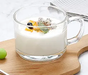 PrimeWorld London Tea Coffee 180 ml Cup set of 6 pcs, Crystal Espresso Mug, Clear Toughened Glass mug with handle for Cappuccino, milk, latte hot/cold drinks etc