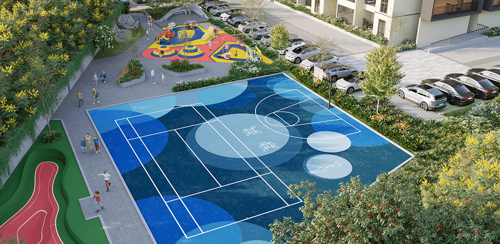 Opulent 16,500 sqft clubhouse with upscale amenities like indoor kids’ play, cafeteria, foosball and arcade games, sauna and jacuzzi, coworking space etc.