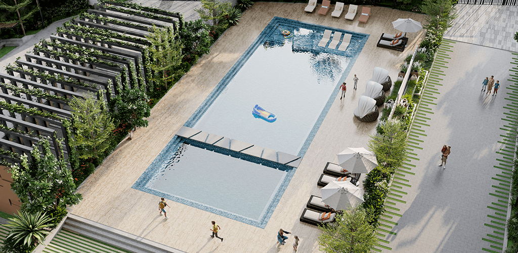 60+ lifestyle amenities and features like an exclusive 7,250 sqft swimming pool with in-pool daybeds and jacuzzi, barbeque corner, pets park, senior citizen court, kids play area and many more