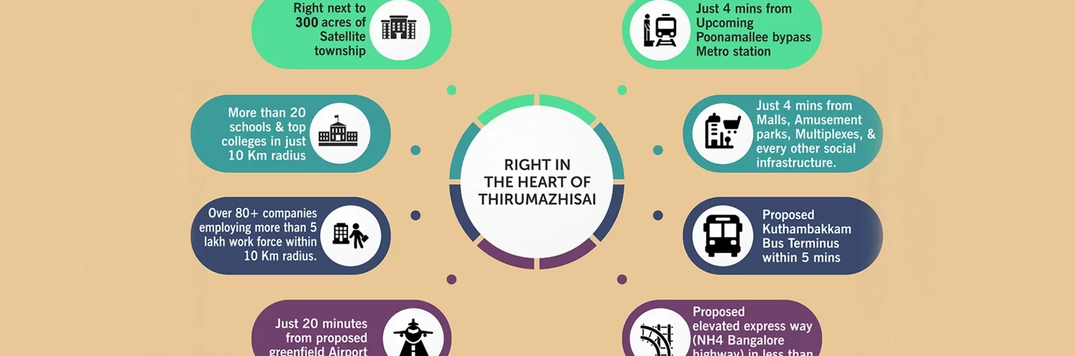 Strategically located at the Gateway to Chennai – Thirumazhisai – the epicenter of economic activity, Codename New Porur assures you of a perfect work-life balance. The Premium gated community situated close to the new Satellite Township and the Oragadam Industrial Corridor is well connected to the Outer Ring Road and in proximity to the numerous IT hubs.