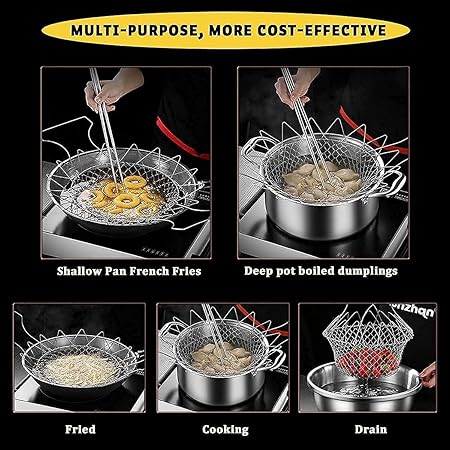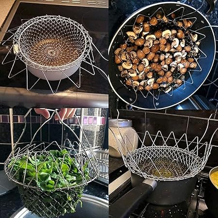 QUENZE Stainless Steel Steamer Basket | Vegetable/Food Steamer Bowl With Handle | Kitchen Tool & Accessories | Food Strainer Plate | For Cooking Food/Cooker/Pot/Pan (Pack of 1,Multicolor)