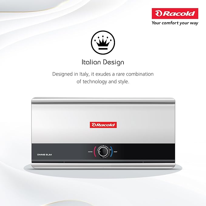 Racold Omnis Slim 15L Horizontal Energy Efficient Storage Water Heater (Geyser) With Free Standard Installation & Pipes |Italian Design| Shower Ready Indicator | Suitable For High Rise Buildings