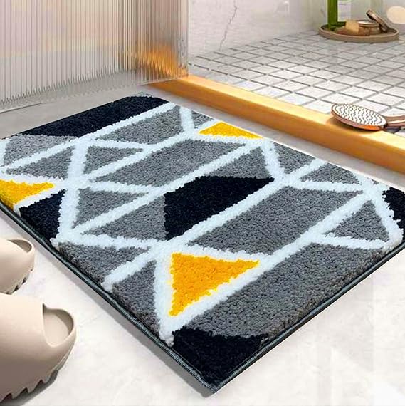 Roseate Mosaic Super Soft (40×60 cm) Microfibre 2000 GSM Bath Mat Super Absorbent Anti-Skid Door Mats for Home/Bathroom Mat/Bedroom/Kitchen/Floor Mat (Grey) Pack of 1